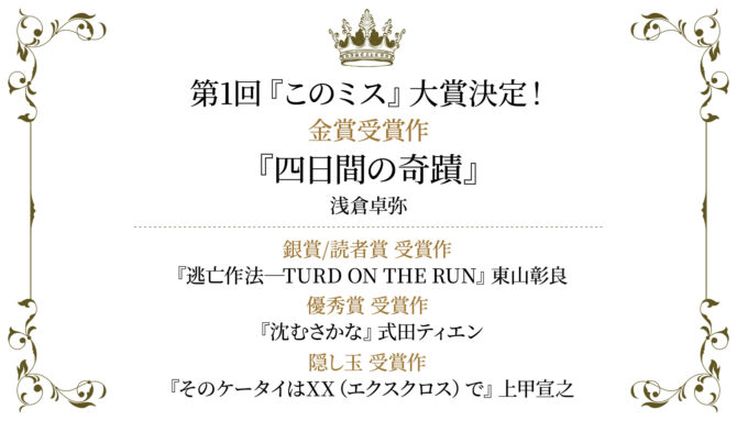 (応募時タイトル・筆名:『タード・オン・ザ・ラン』東山魚良)