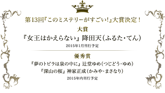 第13回『このミス』大賞発表