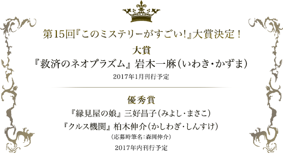 第15回『このミス』大賞発表